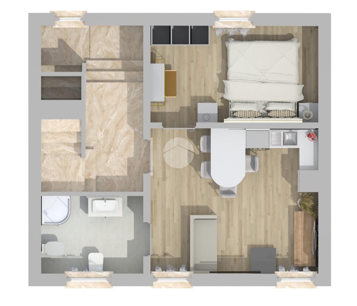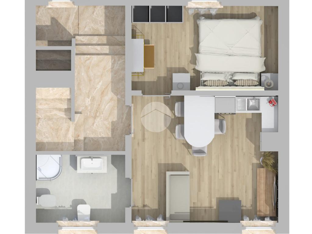 L’appartamento è stato organizzato in modo funzionale per garantire comfort e praticità: dispone di una camera da letto matrimoniale ben definita, una zona cucina con soggiorno accogliente e ben distribuita e un bagno finestrato completo di moderno box doccia.