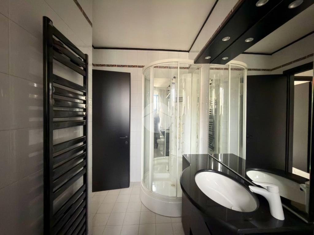 L'appartamento dispone inoltre di un pratico ripostiglio, una cucina separata, una spaziosa camera matrimoniale anch’essa con accesso diretto al balcone e bagno finestrato completo di box doccia.