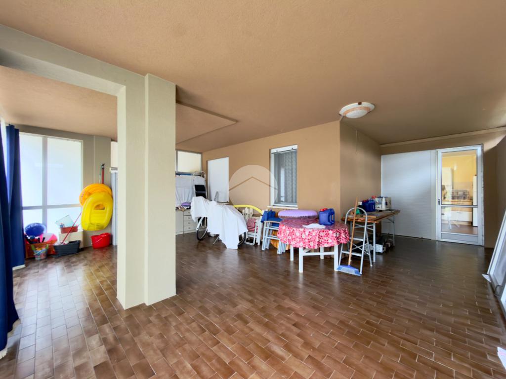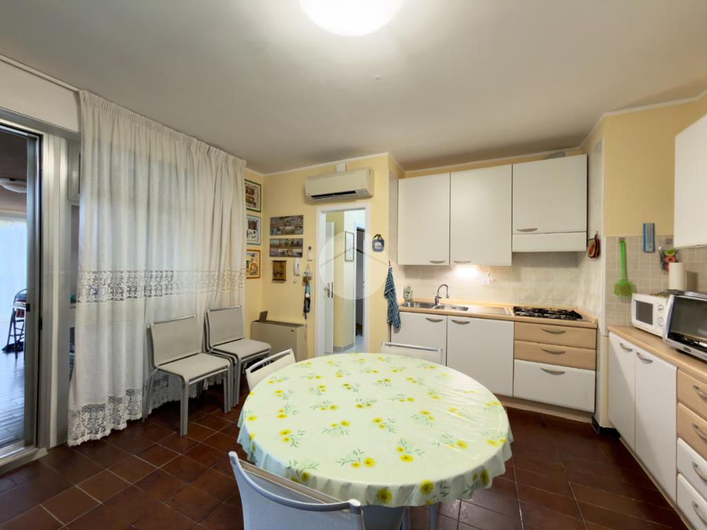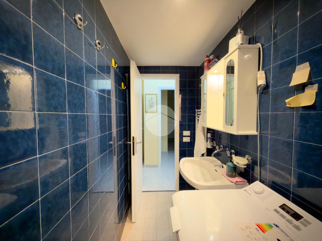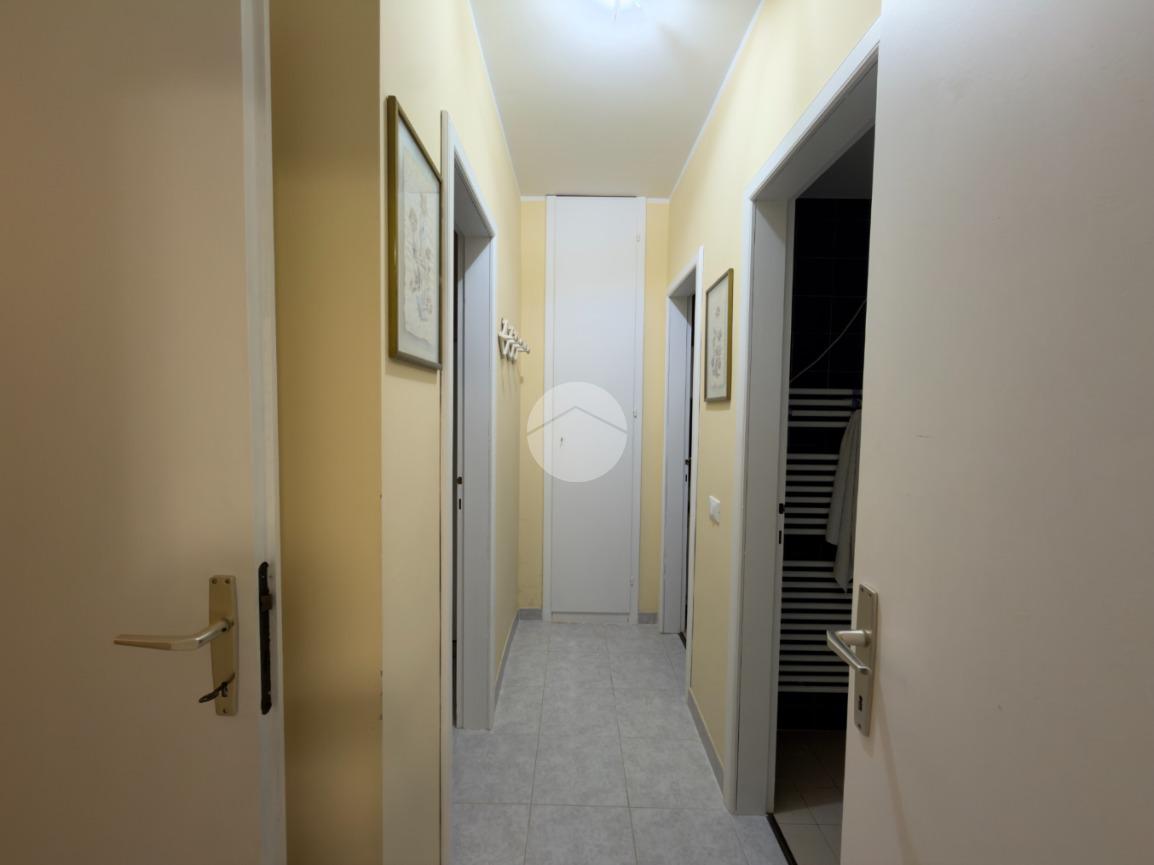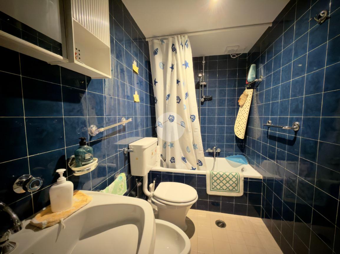 L'appartamento comprende un ampio soggiorno con cucina abitabile, due camere da letto e due bagni (con box doccia e vasca).