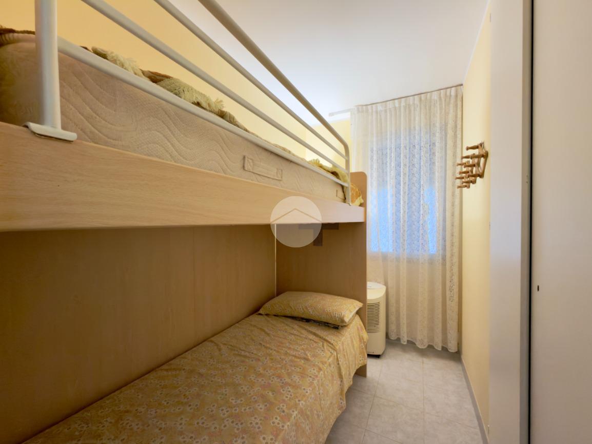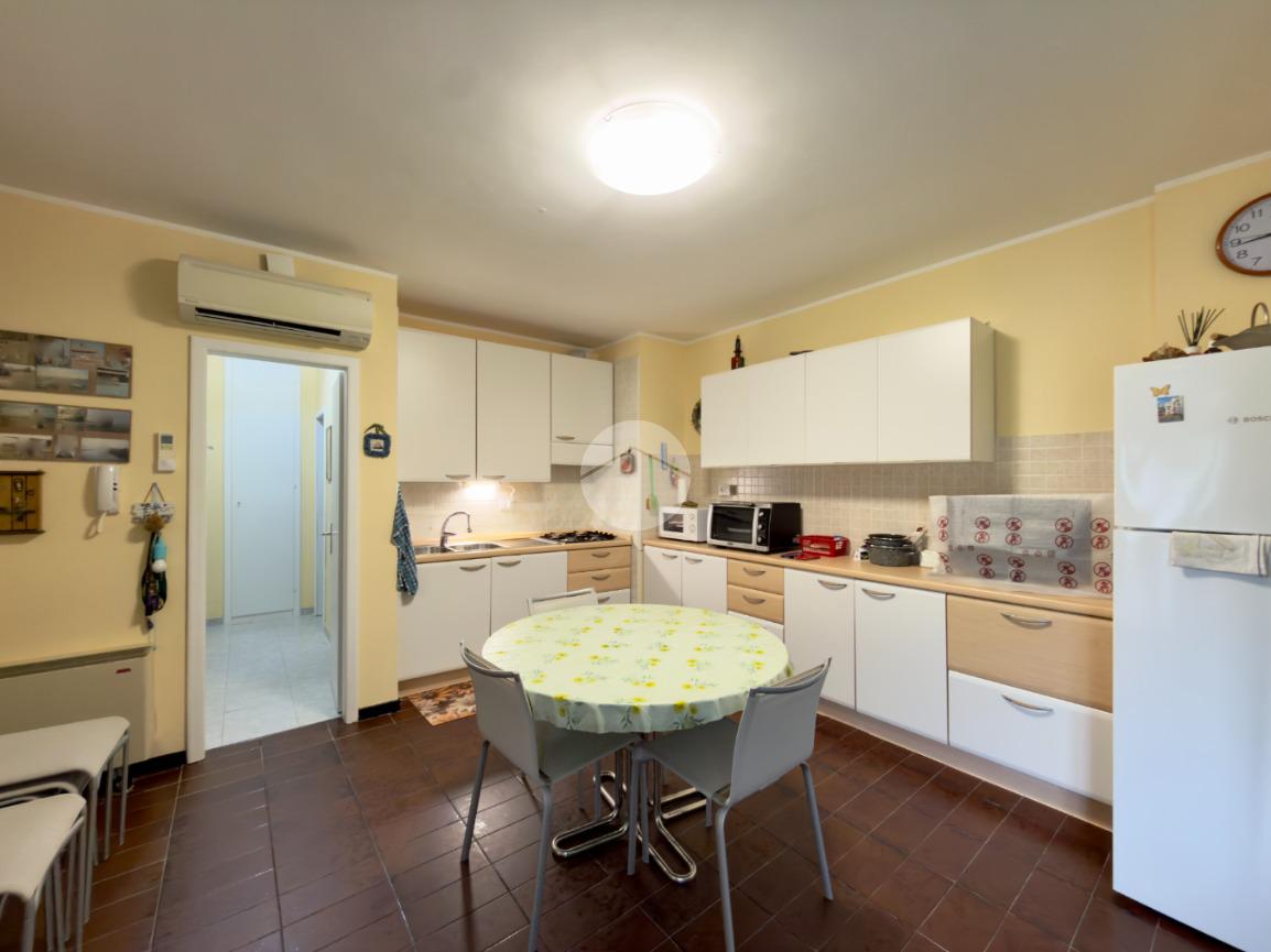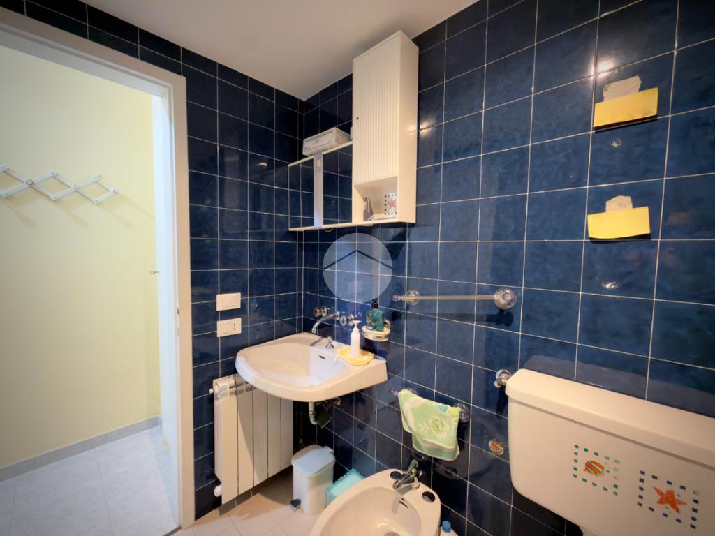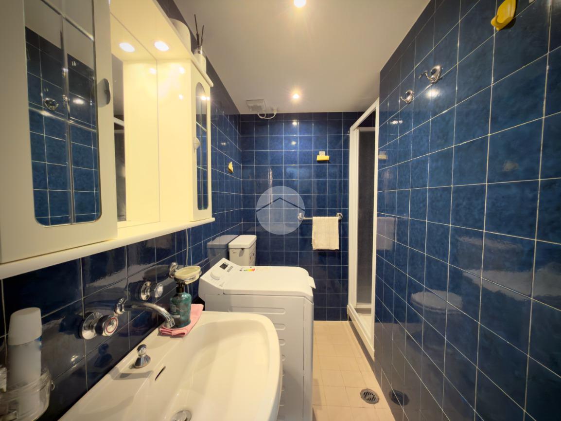 L'appartamento comprende un ampio soggiorno con cucina abitabile, due camere da letto e due bagni (con box doccia e vasca).