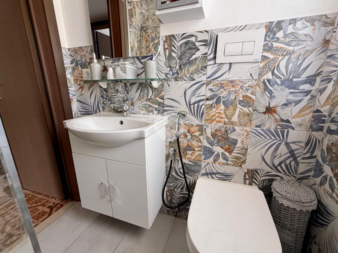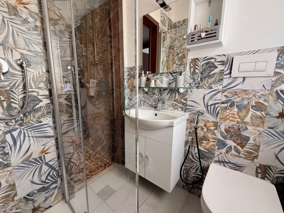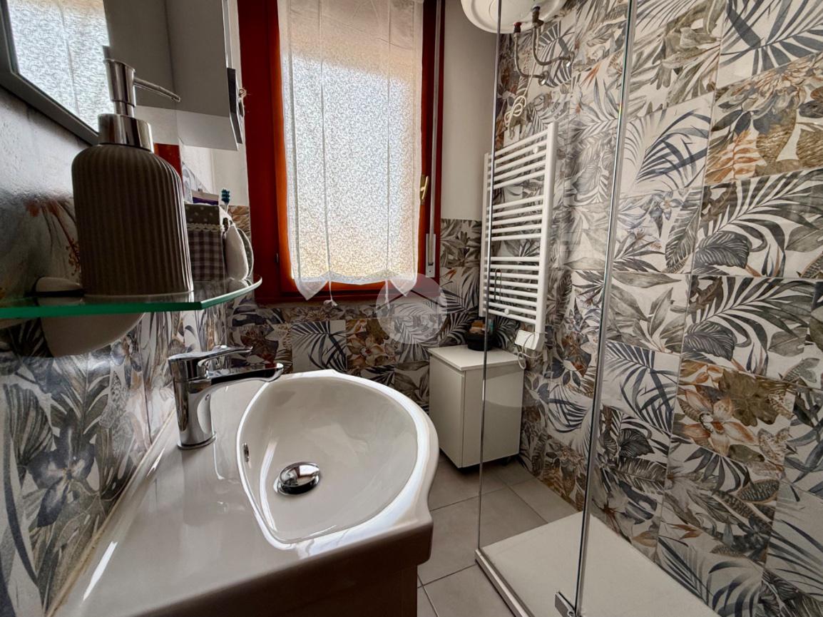 Il bagno, ristrutturato di recente, presenta finiture moderne e curate.